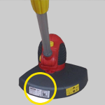 Bei Elektro-Vertikutierern befindet sich das Typenschild rechts auf dem Gehäuse oder auf der Abdeckung.